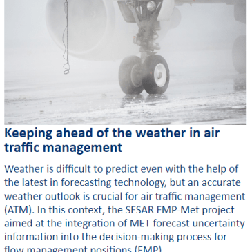 How can we stay ahead of the weather in air traffic management? This question is answered in the October edition of the SESAR e-news, in a section of the newsletter that presents the FMP-Met project and discusses our challenge and objectives, lists the expected benefits and introduces the next steps in the research. Click on … More SESAR 3 JU e-news introduce the FMP-Met project